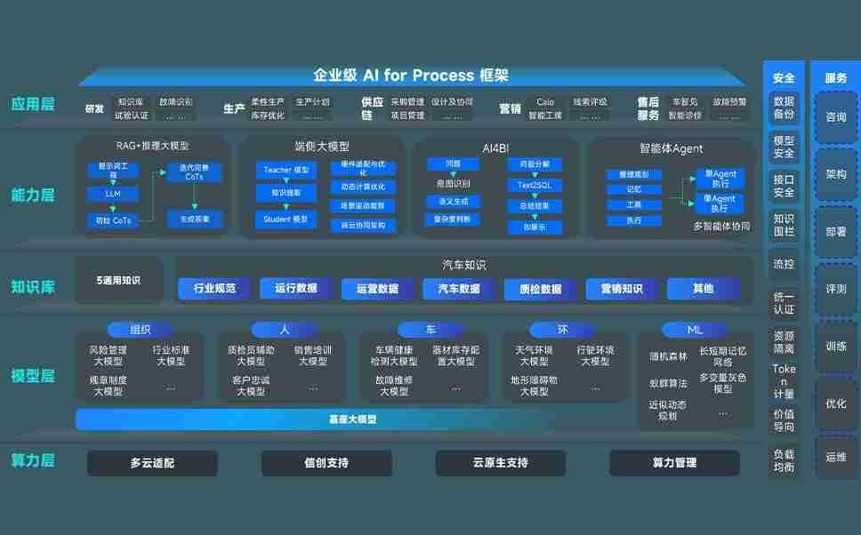yd2333云顶电子游戏问学智车解决方案是一套基于AI技术的汽车行业智能化系统,,覆盖从底层算力到顶层AI应用的全栈方案。。。方案由算力层、、、模型层和应用层组成:算力层,,方案支持多种一体机配置,,,,具备云端灵活部署、、多云适配以及动态优化计算资源的能力;模型层,,yd2333云顶电子游戏问学平台版提供了企业级AI应用一站式构建与管理平台,,,支持基于后训练强化技术的汽车企业专属模型的训练、、、、评测和运营;应用层,,yd2333云顶电子游戏问学DeepSeek版提供包括超级员工、、、、智能招采、、智能营销、、智能客服、、、、AI for BI等一系列解决方案,,可助力汽车行业实现数字化转型,,,,让管理更智能、、、、响应更敏捷。。。