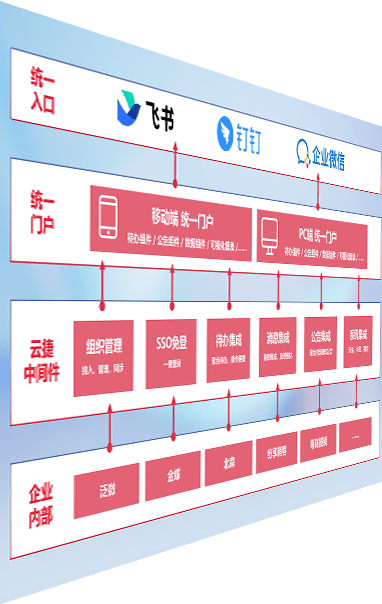 对协作平台提供支持服务,,,支持企业应用与协作平台对接,,,,包含组织同步、、、、消息集成、、待办集成等。。。支持目前主流的协作平台:钉钉、、、企微和飞书。。。